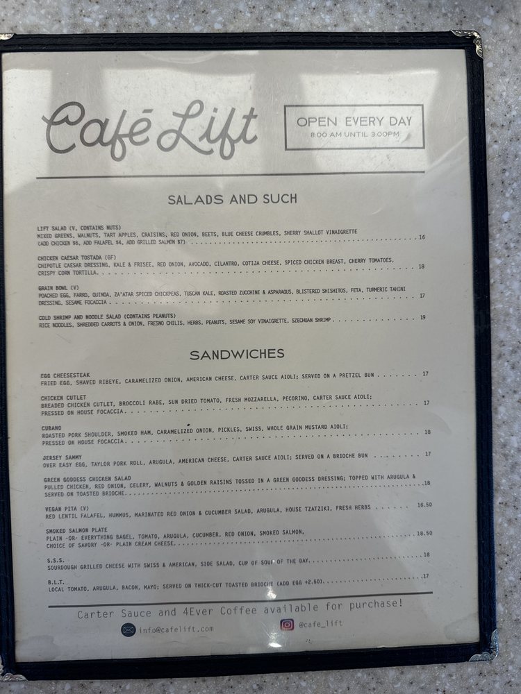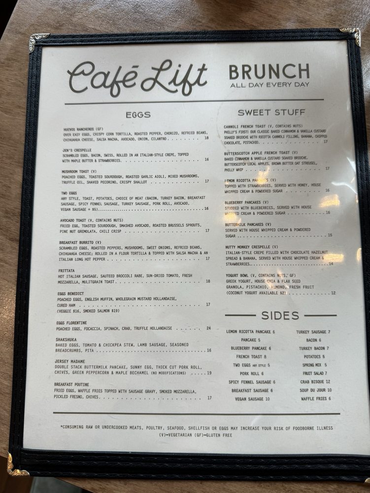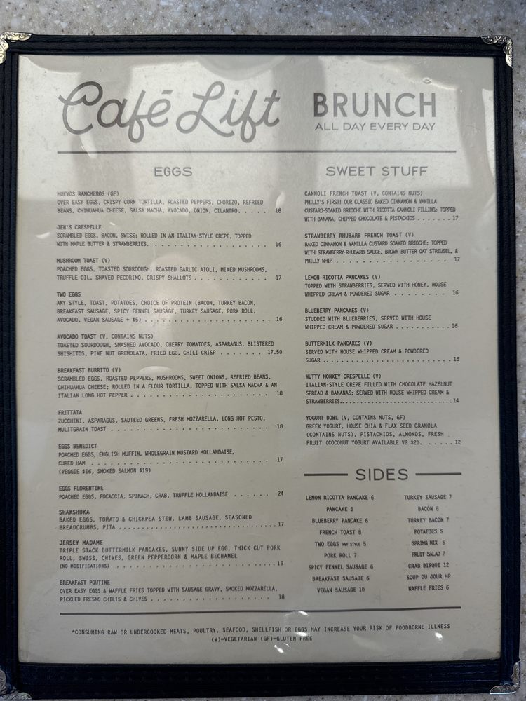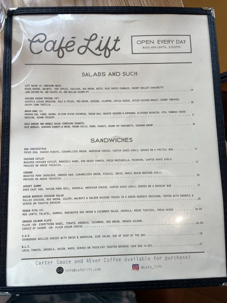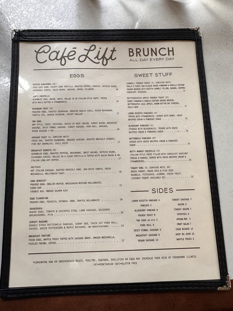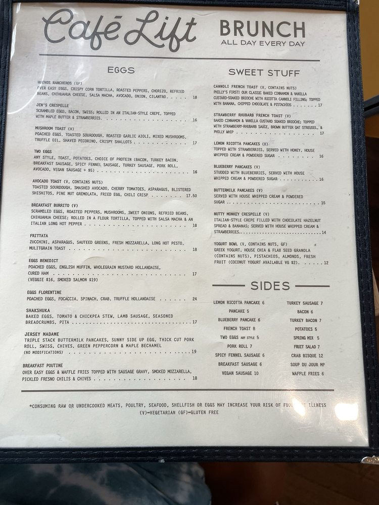 Located in the heart of Philadelphia, Cafe Lift is a trendy diner offering a unique blend of New American cuisine with a focus on breakfast and brunch. This hipster, casual spot provides a welcoming atmosphere with options for vegans, vegetarians, and those with various dietary preferences. Guests can enjoy amenities such as outdoor seating, free Wi-Fi, and gender-neutral restrooms. The restaurant also offers a range of services including delivery, takeout, catering, and reservations.